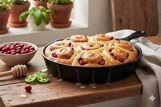 🍒🔥 Cranberry Jalapeño Spiral Rolls with Lemon Glaze