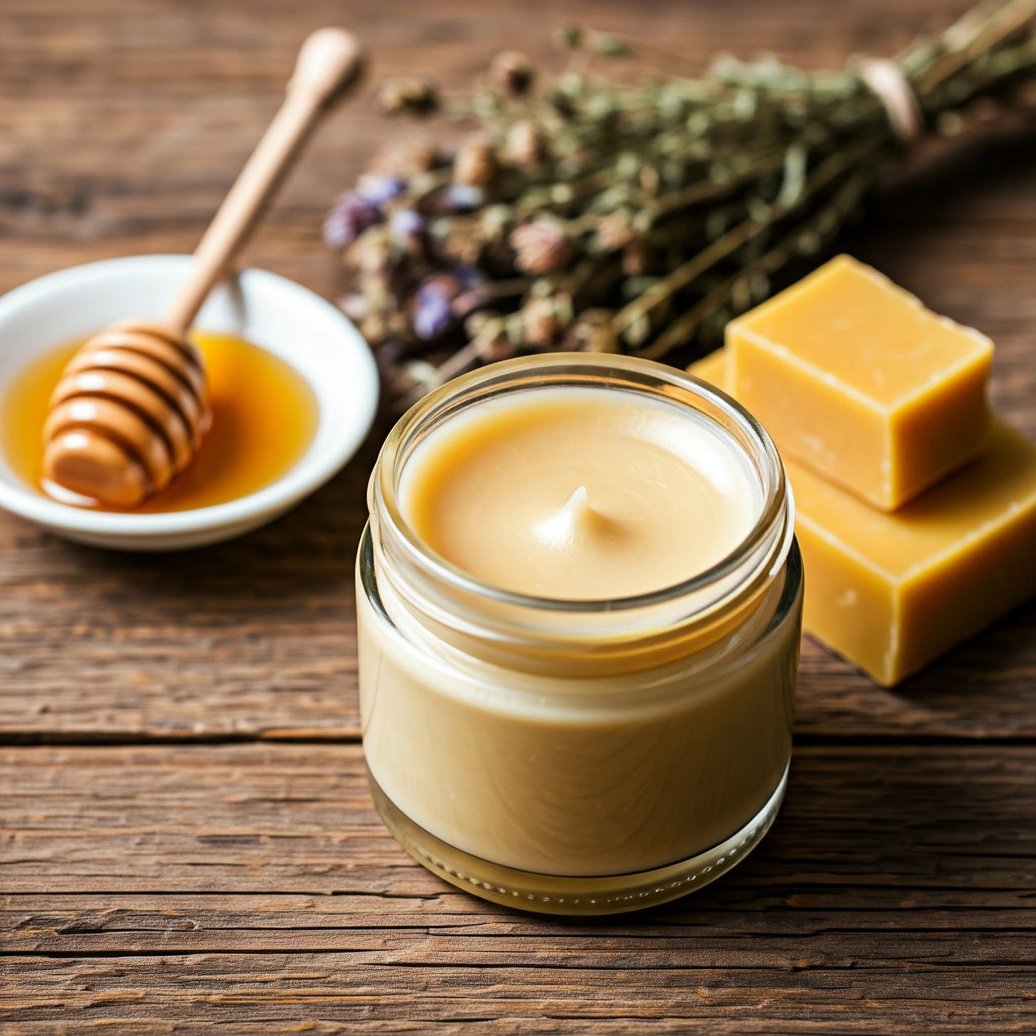 - Beeswax: Adds structure to the salve and creates a protective barrier, locking in moisture.