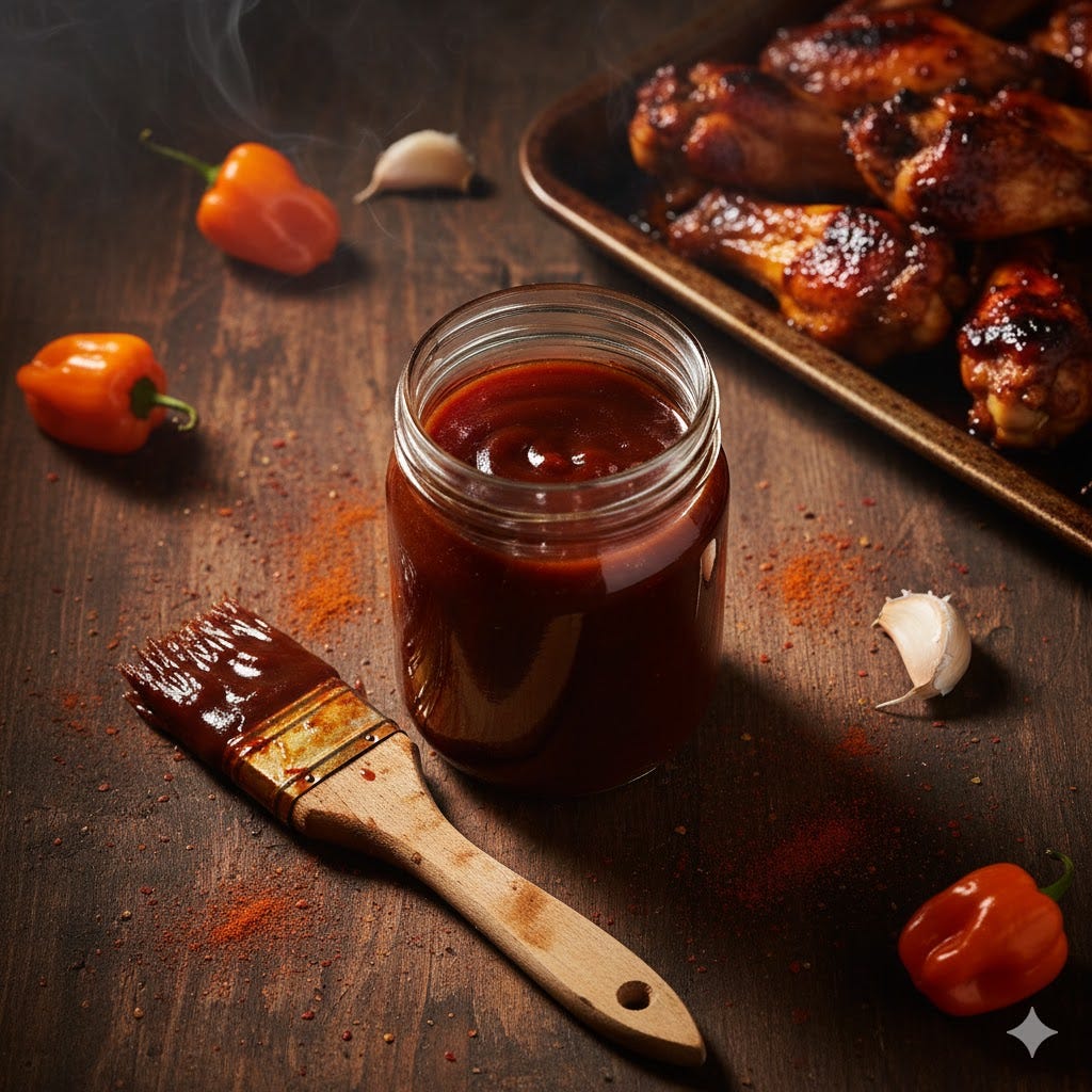 This one kicks harder — smoky tomato base, sweet undertones, and a slow-building heat that hits the back of your throat just enough to remind you you’re alive. The kind of sauce that begs to be slathered on grilled chicken or brushed over ribs while your favorite 90s track blares in the background.
