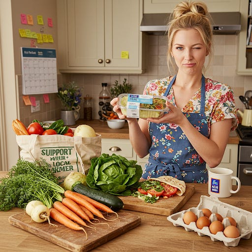 Here’s the thing though: the system may be a hot mess express, but that doesn’t mean we have to be passengers. You actually can eat well, support your local farmers, and stick it to Big Grocery — without going feral in the baking aisle.