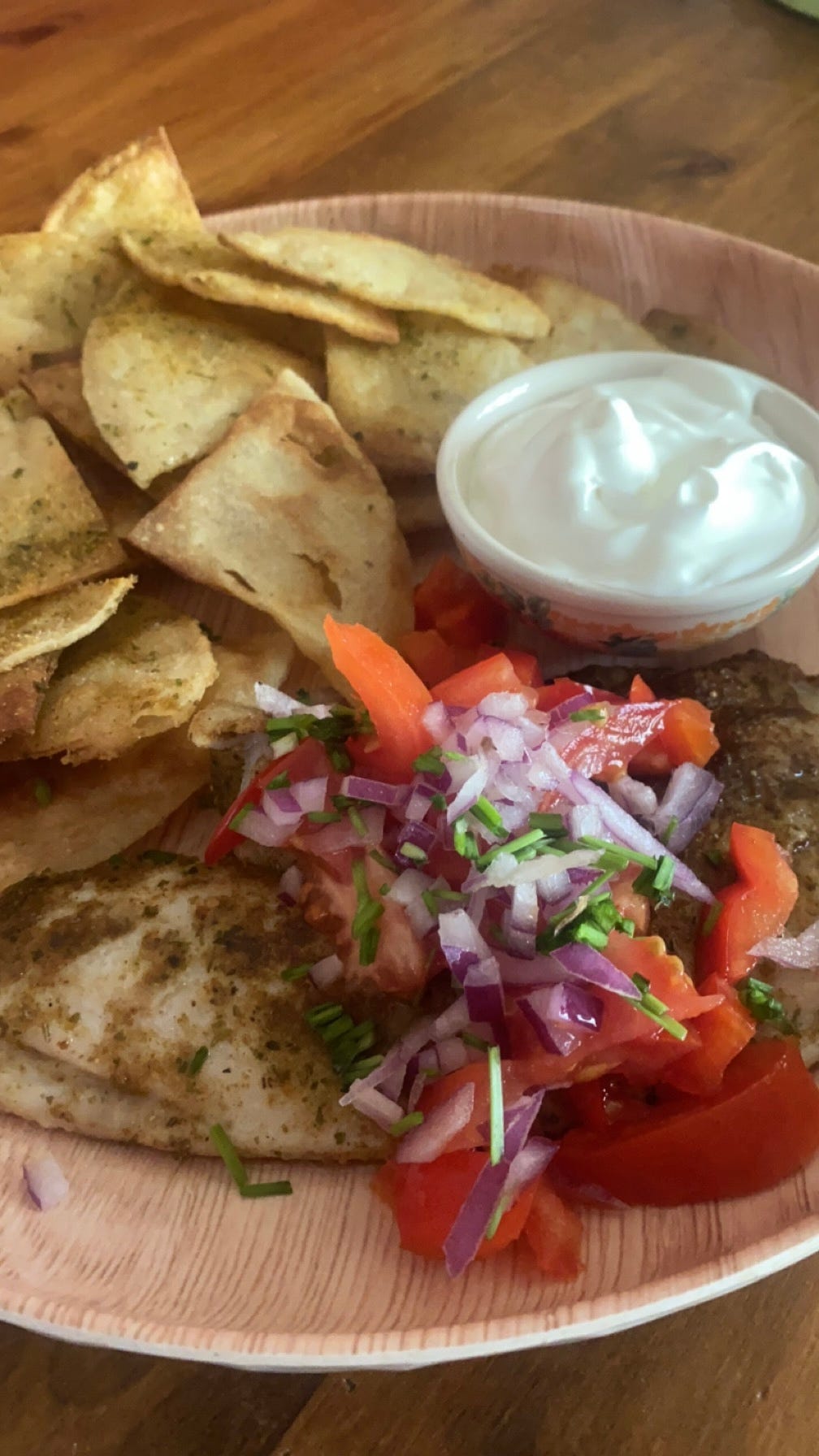 Enjoy your flavorful and crispy cumin-tilapia with homemade tortilla chips and fresh salsa!