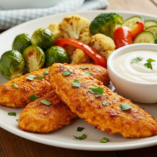 This recipe combines tangy Greek yogurt with spicy buffalo sauce to create ultra-tender, flavorful chicken tenders. Paired with a simple roasted vegetable medley, it’s a balanced meal packed with protein and nutrients.