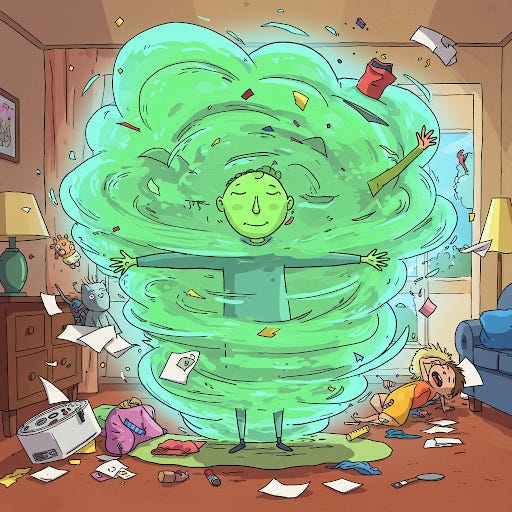 Why? Because I was running on fumes, trying to manage my own neurodivergent brain while raising other neurodivergents—without even knowing I was neurodivergent myself. I’d get so burnt out from keeping it all together that the slightest visual clutter would push me over the edge. My brain craves order to focus, but I’d get distracted by the chaos, which led to frustration, which led to anger, which led to me ranting about why is there a half-eaten banana on the bookshelf and WHO DID THIS?