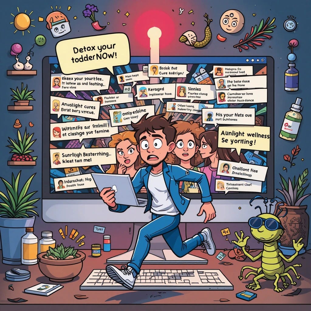 In the beginning, I tried to be a voice of reason (aka the person holding the flashlight while everyone else gleefully ran deeper into the rabbit hole). I’d correct dangerous misinformation, like warning against extreme detox protocols for toddlers (yes, people were actually suggesting that). I encouraged newcomers, reminding them that while their current choices might not be the "cleanest," they were making progress and could improve over time.